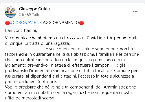 Lo apprendiamo dalla bacheca Facebook del Sindaco di Arienzo, Giuseppe Guida.