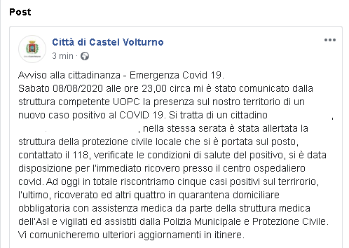 Lo apprendiamo dalla pagina Facebook Città di Castel Volturno.