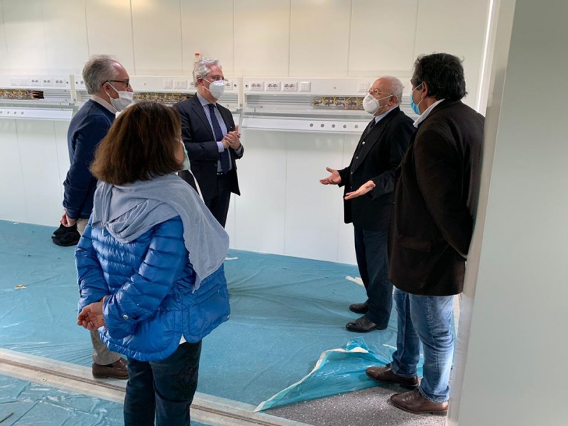 "CORONAVIRUS, sopralluogo al cantiere dell’ospedale modulare di Caserta: un intervento di grandissimo valore. Stiamo rispettando alla lettera di tempi di realizzazione. Un altro dei miracoli amministrativi che abbiamo fatto in Campania.