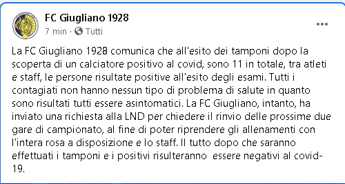 Lo apprendiamo dalla pagina Facebook FC Giugliano 1928.