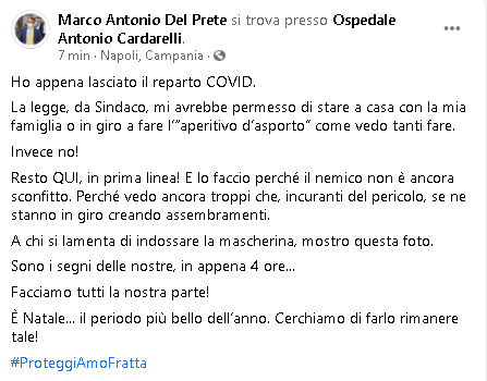 Lo apprendiamo dalla pagina Facebook del Sindaco di Frattamaggiore, Marco Antonio Del Prete.