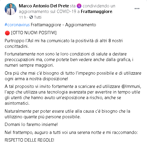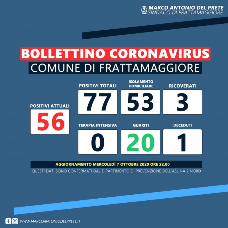 Lo apprendiamo dalla pagina Facebook di Marco Antonio Del Prete, Sindaco di Frattamaggiore.