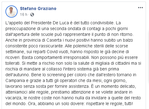 Questo quanto apprendiamo dalla pagina facebook dell'On. Graziano:
