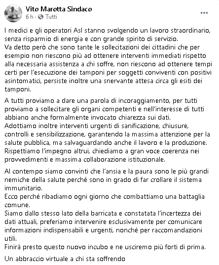 (Ruota il telefono per leggere il post Facebook)