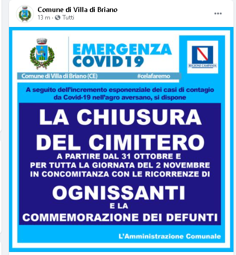 Lo apprendiamo dalla pagina Facebook del Comune di Villa di Briano.