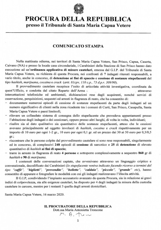 Questo parte del testo della nota inviataci dalla Procura della Repubblica presso il Tribunale di SMCV: