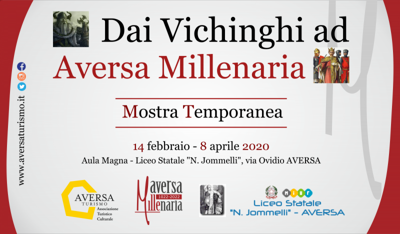 "Continua la promozione storico culturale delle radici normanne della città di Aversa, in attesa dell’evento celebrativo del millennio. Anche quest’anno, infatti, -spiega la nota- la città normanna festeggerà il suo compleanno, un’altra tappa del percorso che condurrà Aversa verso il 2022, anno degli eventi-spiega la nota- celebrativi del millennio. Aspettando il compleanno di Aversa, venerdì 14 febbraio alle ore 10:00, presso l’Aula Magna del Liceo Statale N. Jommelli di Aversa in Via Ovidio, Aversa, avrà luogo l’inaugurazione della Mostra-spiega la nota- Temporanea “Dai Vichinghi ad Aversa Millenaria”. L’esposizione, disponibile dal 14 febbraio al 8 aprile 2020, è realizzata da AversaTurismo, in collaborazione con l’Istituto Jommelli, diretto dalla Prof.ssa Rosa Celardo, scuola capofila-spiega la nota- dell’edizione 2020 di Aversa Millenaria. Nello spazio allestito presso il Liceo, in attesa del grande evento del Compleanno di Aversa che si terrà i prossimi 18 e 19 aprile, sarà possibile ammirare quadri, manufatti, costumi, accessori,-spiega la nota- riproduzioni di scudi ed armi, pannelli informativi ed elementi multimediali realizzati nel corso degli anni nell’ambito del Progetto “Aversa Millenaria”, ideato e promosso da AversaTurismo per celebrare la storia secolare di Aversa a partire dalle sue origini normanne.-spiega la nota- Venerdì 14 la mostra sarà aperta al pubblico per tutta la giornata.-spiega la nota- Nei giorni successivi sarà a disposizione per le visite di tutti gli alunni degli istituti scolastici e per cittadini e visitatori previa prenotazione il martedì, giovedì ed il sabato dalle 9:00 alle-spiega la nota- 12:00. La Mostra è stata allestita grazie al supporto del socio di AversaTurismo Gennaro Nobile, alla sensibilità del Dirigente Scolastico del Liceo Jommelli, Rosa Celardo, ed-spiega la nota- alla collaborazione dei docenti dell’Istituto Gilda Oliva, Biagio Russo e Michele Autiero e degli amici Luigi Trasacco ed Alberto Zoppo.-spiega la nota-