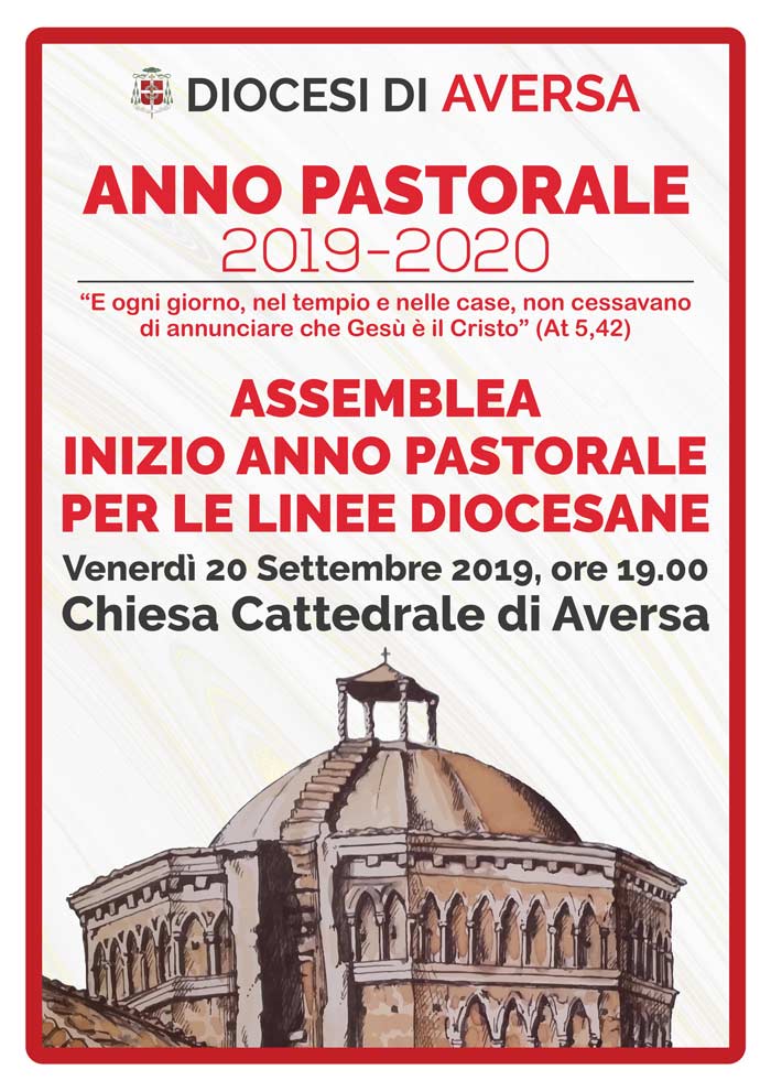 "Venerdì 20 Settembre alle ore 19.00, nella Chiesa Cattedrale di Aversa, si terrà l’Assemblea di Inizio Anno Pastorale 2019-2020: nell’occasione il Vescovo di Aversa, Mons. Angelo Spinillo, presenterà le nuove linee pastorali che segneranno l’attività della Chiesa aversana durante l’anno. Si legge nel comunicato. “Nel 2018-2019 - spiega Mons. Spinillo - ci siamo concentrati sulla rilettura della nota pastorale della CEI ‘Il volto missionario delle parrocchie in un mondo che cambia’. Questo perché ciascuno di noi, e l'intera nostra comunità ecclesiale, potesse maturare la consapevolezza della vocazione ad essere comunità dal volto missionario, entusiasta nell'annunciare il Cristo, salvezza e vita per il mondo, attenta alla necessaria apertura ai linguaggi ed al vivere degli uomini di questo tempo”. Si legge nel comunicato. La nuova tematica nella quale si articolerà l’ Anno Pastorale 2019-2020 - “E ogni giorno, nel tempio e nelle case, non cessavano di annunciare che Gesù è il Cristo” (At 5,42) – intende fornire un sostegno alla comunità diocesana e agli operatori pastorali, al fine di sviluppare una maggiore consapevolezza sui temi e sulle sollecitazioni che sono il frutto del cammino avviato lo scorso anno. Si legge nel comunicato. Le nuove linee pastorali, che verranno illustrate dal vescovo normanno il prossimo 20 settembre, serviranno a porre attenzione alle nuove sfide trasmesse tanto dal magistero di Papa Francesco (“Sogno una scelta missionaria capace di trasformare ogni cosa”) quanto dai continui cambiamenti in atto nella nostra società. Si legge nel comunicato. “Nel decennio che si sta concludendo - prosegue Mons. Spinillo - abbiamo parlato tante volte della necessità di riconoscere il cambiamento d'epoca che sta avvenendo con ritmi assai veloci e con caratteri di radicalità. Percepiamo tutti l'esigenza e la speranza che le nostre chiese, le nostre comunità, noi stessi personalmente, ci apriamo a nuovi linguaggi e nuove modalità di incontro con il mondo e di missione”. Si legge nel comunicato. Il vescovo sprona dunque i fedeli a vivere la missione ed ogni forma di apostolato come mossi da “ragioni appassionanti”, dalla “gioia del Vangelo”, superando quelle che sentiamo come “fatiche missionarie”, o “doveri di carattere morale” per contrastare il male del mondo. Si legge nel comunicato. “Per questo motivo, nel corso dell’anno pastorale ormai alle porte vorremo ancora celebrare con attenzione le giornate che coinvolgono tutti i credenti in un dialogo che, assumendo come proprie le più grosse problematiche della vita del mondo, ci sollecitano ad entrare in dialogo con l'umanità annunziando speranza e condivisione di cammino nella ricerca di ciò che veramente è vita per l'uomo aperto alla presenza di Dio”. Si legge nel comunicato. Ricordiamo che il percorso annuale che avrà inizio il 20 settembre si snoderà poi in una serie di appuntamenti pastorali e vivrà l’altro momento culminante il 4 febbraio 2020 con il Convegno Diocesano dal titolo “Nella legge di Dio la missione per il suo popolo”, che vedrà la riflessione di don Fabio Rosini, direttore del Servizio per le Vocazioni della Diocesi di Roma."