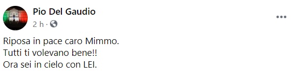 "Riposa in pace caro Mimmo. Tutti ti volevano bene!! Ora sei in cielo con LEI."