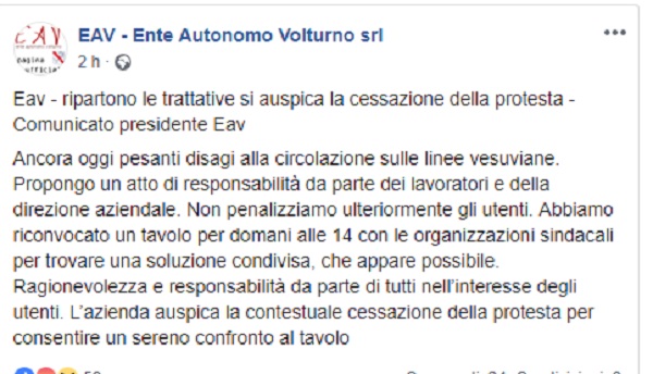 Questo il post pubblicato sulla pagina fb ufficiale dell'EAV.