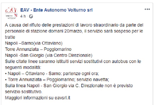 Questo il post pubblicato sulla pagina fb ufficiale dell'EAV
