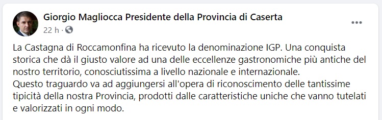 Questo quanto pubblicato sulla pagina fb del Pres. della Prov. Ce