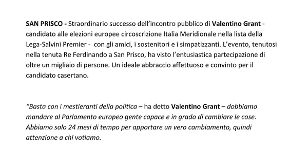 El.Europee. Circa mille persone a Tenuta Re Ferdinando per Valentino Grant