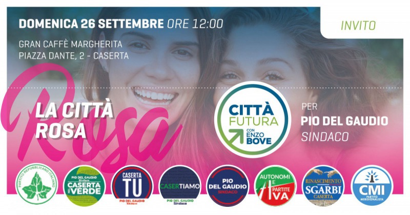 "Le candidate del Polo civico di Città Futura con Pio Del Gaudio sindaco si raccontano e si confrontano con la città. Alle 12 di domenica 26 settembre saranno in piazza Margherita per un simpatico aperitivo. Il contesto sarà utile per spiegare il proprio programma elettorale, ma soprattutto per ascoltare le istanze e le necessità delle donne casertane. -Si legge nella nota- Donne che lavorano, donne madri, donne single, donne che ogni giorno si trovano ad affrontare per ruoli diversi, le difficoltà di una città che è poco incline al confronto femminile. Pochi servizi e tanti disagi che saranno affrontate insieme domenica prossima. -Si legge nella nota- La forza del polo civico consiste proprio nel mettere da parte il proprio ego per dare spazio e voce a coloro che saranno gli unici arbitri e giudici di questa partita che ha come unico obiettivo: amministrare bene una Città che ha un forte potenziale che negli anni si è perso a causa di una politica miope che ha pensato solo ed esclusivamente al proprio tornaconto personale."