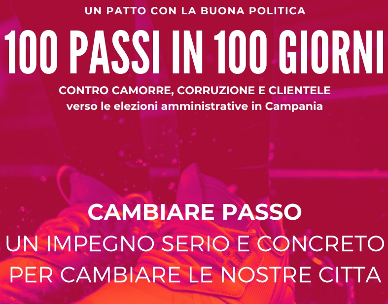Pubblichiamo nota stampa Libera Campania: "“Un patto con la buona politica per sconfiggere camorre e corruzione” Libera Campania, in vista delle elezioni amministrative del 3 e 4 ottobre 2021, ha lanciato stamattina a Napoli la campagna “100 passi in 100 giorni - contro camorre, corruzione e clientele”, un patto proposto ai candidati e alle candidate alla carica di sindaco/a e di consigliere/a comunale di tutti i comuni della Campania chiamati al voto. Il patto contiene sei proposte che la rete di associazioni dell’antimafia sociale ritiene prioritarie nella lotta alle camorre: politiche sociali, beni confiscati, educazione, memoria delle vittime innocenti, trasparenza e anticorruzione, usura, racket e gioco d’azzardo. Sei proposte per rigenerare le città, per un piano per la giustizia sociale ed ambientale." CLICCA QUI per vedere il documento