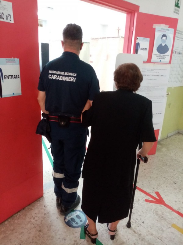 I Volontari dell'Associazione Nazionale Carabinieri di Caserta Nucleo Reggia, con la stessa solerzia con cui agiscono presso la nostra rinomata Reggia, muniti di grande spirito d'altruismo, oltre che delle mascherine, al fine di permettere la programmata votazione agli elettori di tutti i seggi del Comune di San Nicola la Strada, e specialmente a quelli con evidenti difficoltà motorie, si sono organizzati in gruppi e coprendo le fasce orarie di votazione, permettendo, anche alle categorie più deboli, di riuscire ad esprimere il loro consenso nella votazione. Infatti sia domenica che lunedì tutti i Volontari dell'Associazione Nazionale Carabinieri di Caserta Nucleo Reggia hanno svolto alacremente il loro servizio nei seggi del Comune di San Nicola la Strada stando pronti ad intervenire in ogni modo per eventualmente ristabilire immediatamente l'ordine e facendo rispettare anche le norme anticontagio da Covid-19.