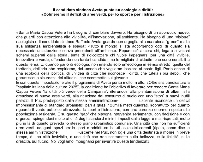 Questa parte della nota stampa del candidato a Sindaco, Aveta: