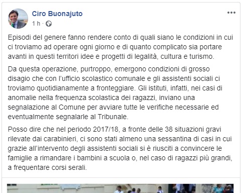 Questa la riflessione del Sindaco di Ercolano Ciro Buonajuto a seguito della notizia di diverse denunce ai danni di genitori che non facevano frequentare ai figli la scuola.