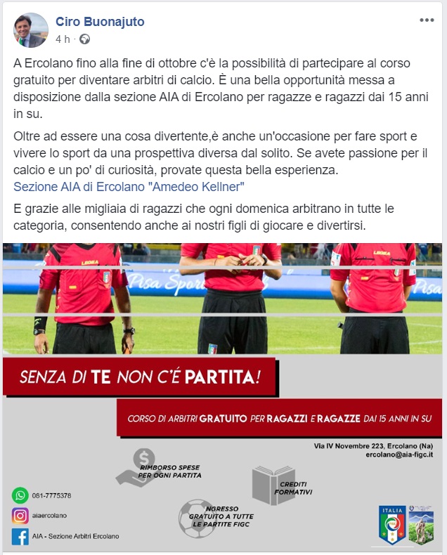 Questo quanto pubblicato dal Sindaco di Ercolano Buonajuto