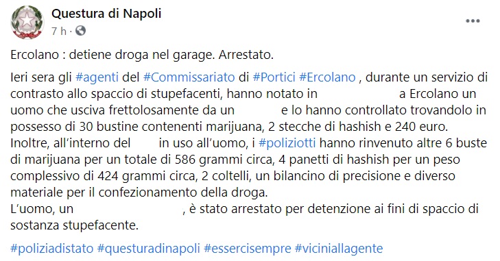 Questo parte di quanto pubblicato sulla pagina facebook della Questura di Napoli: