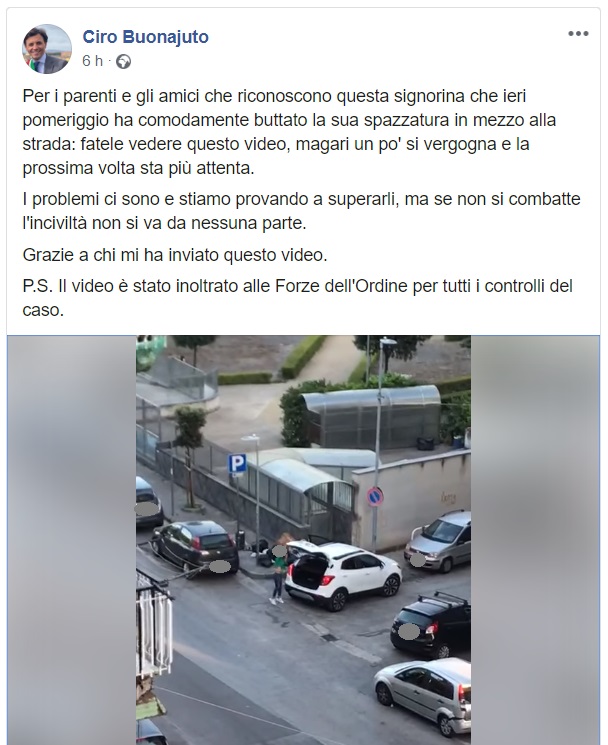 Il Sindaco di Ercolano Ciro Buonajuto ha pubblicato sul proprio profilo FB un video che inchioda una donna mentre getta rifiuti per strada.