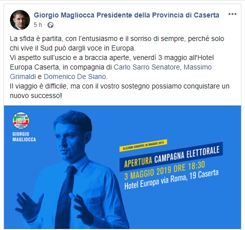 Continua l'avvicinamento all'apertura della campagna elettorale delle Europee per Giorgio Magliocca