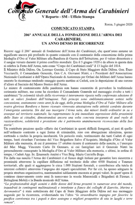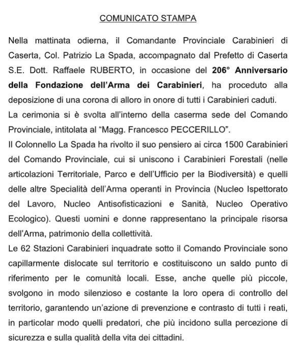 Pubblichiamo nota stampa Comando Provinciale Carabinieri di Caserta