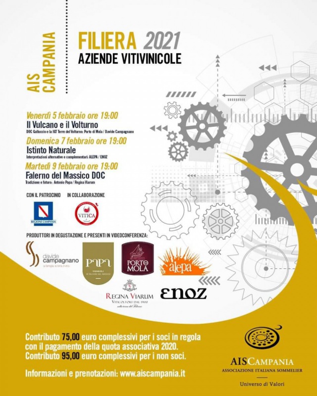"Filiera". Questo il titolo dello ‘smart tasting’ promosso dall'Associazione Italiana Sommelier Campania, che in questo prima evento del 2021 vede protagonista la delegazione di Caserta e i vini di Terra di Lavoro portati direttamente nelle case italiane per una serie di appuntamenti online con i produttori. I vini casertani fuori dai confini