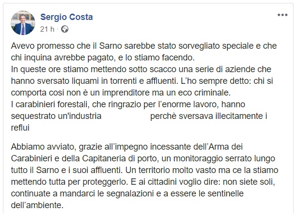 Questo quanto pubblicato dal Ministro Costa