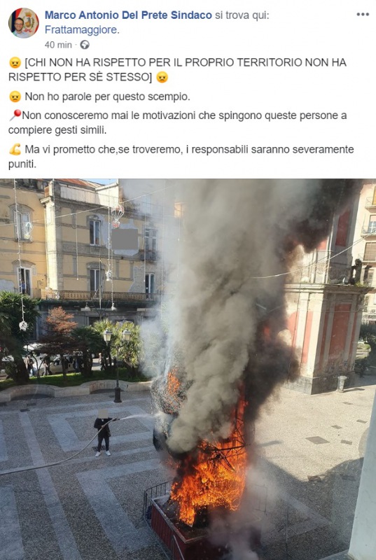 Questo quanto pubblicato su facebook dal Sindaco Del Prete: