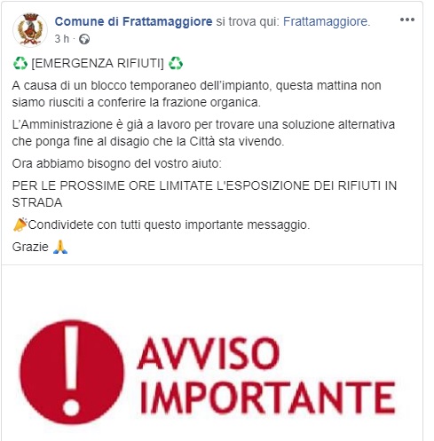Questo il post pubblicato sulla pagina fb ufficiale del Comune di Frattamaggiore.
