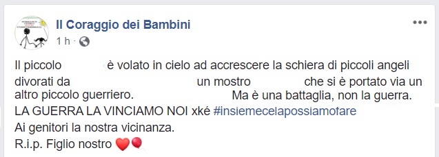 Questo quanto pubblicato dall'associazione Il Coraggio dei Bambini