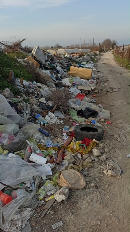 ... Nel pomeriggio di ieri durante un monitoraggio ambientale effettuato in agro di Frignano (CE) da volontari D.E.A e Osservatori Civici Campania si riscontrava un pesante e diffuso fenomeno di precarieta ambientale ... Tra i cumuli di materiali veniva riscontrata la presenza di: pezzi di lastre in conglomerato cementizio contenente- si legge nella nota- verosimile amianto, guaine bituminose, pneumatici, materassi, RAEE, materiali plastici, pezzi plastici e parairti di autovetture, Indumenti, oli esausti, e segni di combustioni ripetute."