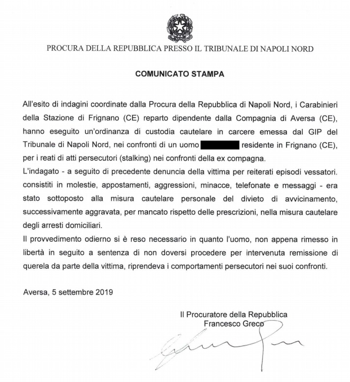 Questo il comunicato stampa della Procura della Repubblica di Napoli Nord
