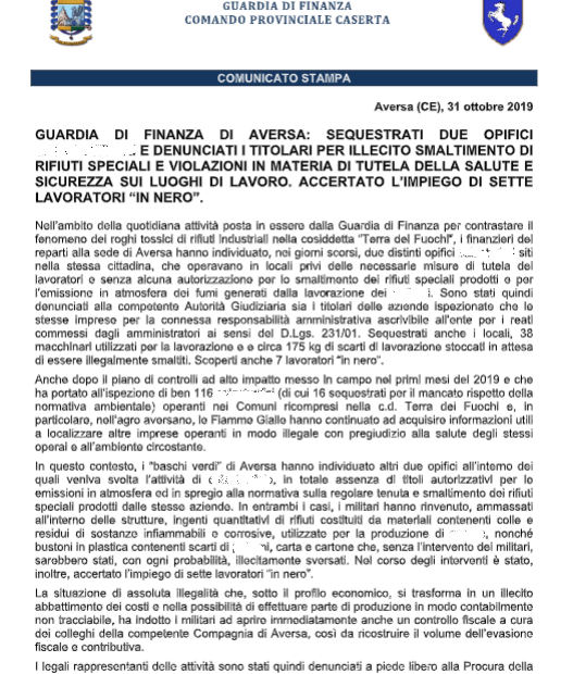 Di seguito, parte del testo del comunicato, della guardia di Finanza, giunto in redazione.