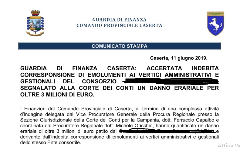Di seguito, parte del testo del comunicato della Guardia di Finanza di Caserta, giunto in redazione.