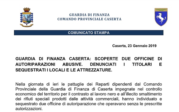 Questo il comunicato inviatoci dal Comando Provinciale della Guardia di Finanza di Caserta.