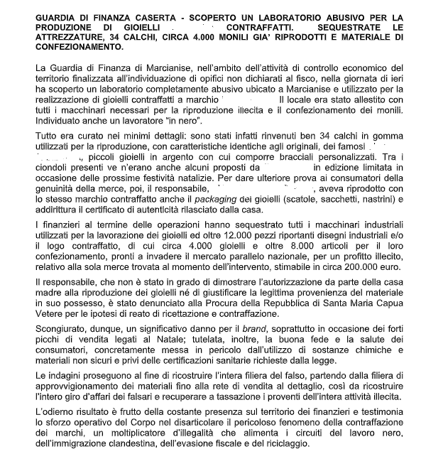 Di seguito, parte del testo del comunicato della Guardia di Finanza, giunto in redazione.