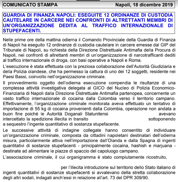 Pubblichiamo parte della nota stampa della GDF Napoli