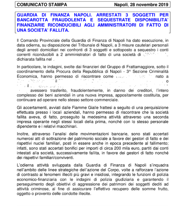 Di seguito, parte del testo del comunicato della Guardia di Finanza, giunto in redazione.