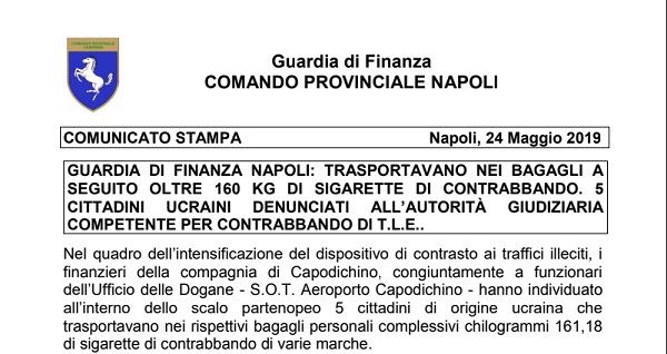 Questo il comunciato inviatoci dal Comando Provinciale della Guardia di Finanza di Napoli.