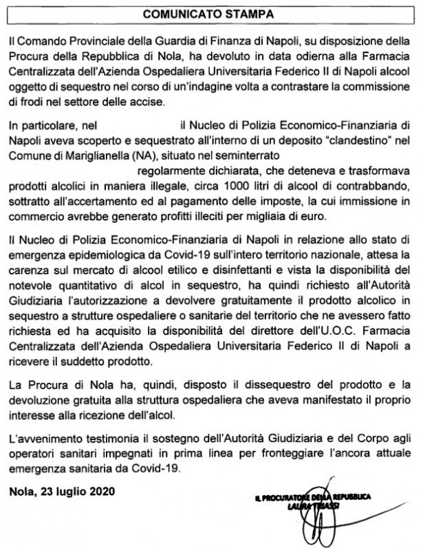 Pubblichiamo nota stampa della Procura di Nola