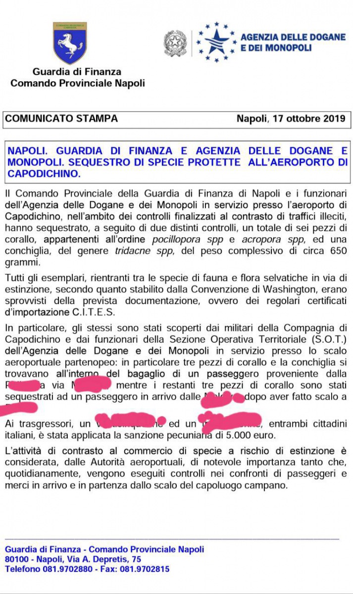 Di seguito parte del testo del comunicato della Guardia di Finanza, giunto in redazione.
