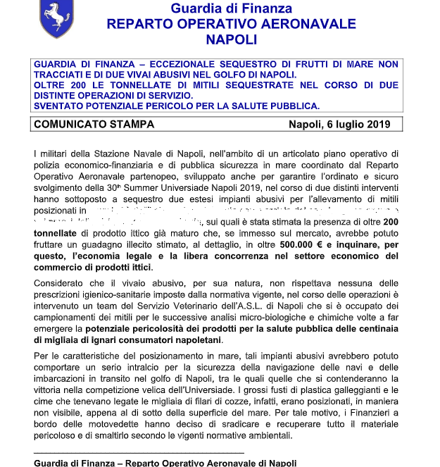 Di seguito, parte del testo del comunicato della Guardia di Finanza, giunto in redazione.