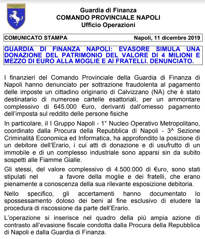 Pubblichiamo nota stampa del Comando Provinciale Napoli della GDF