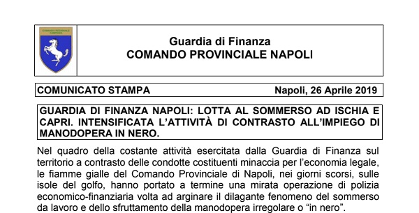 Questo il comunicato inviatoci dal Comando Provinciale della Guardia di Finanza di Napoli.