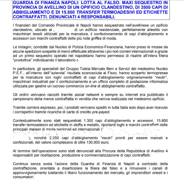 Di seguito, parte del testo del comunicato, della Guardia di Finanza, giunto in redazione.