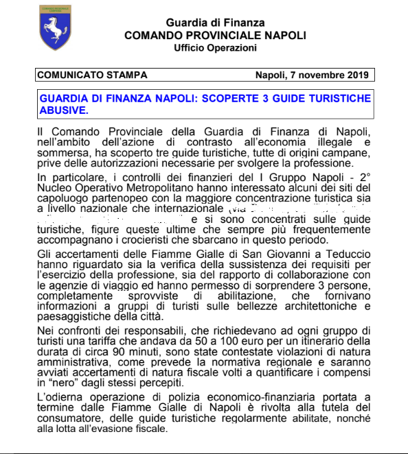 Di seguito, parte del testo del comunicato della Guardia di Finanza, giunto in redazione.