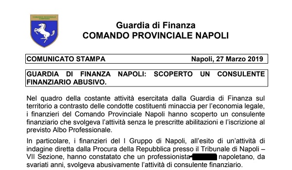 Questo parte del comunicato invaitoci dal Comando Provinciale della Guardia di Finanza di Napoli.