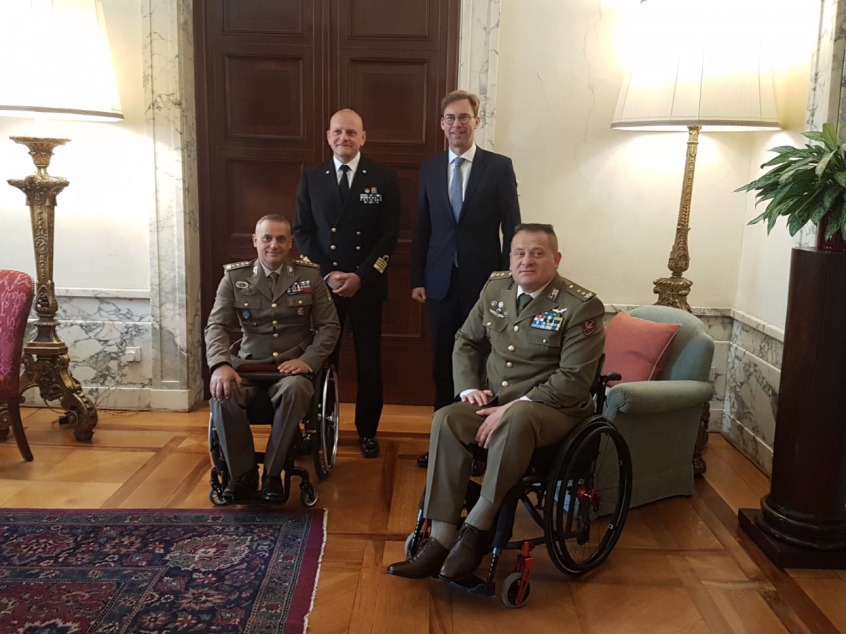 Si legge nel comunicato. All’incontro erano presenti anche il C.V. Roberto Recchia, Capo Ufficio Sport e Collegamento Forze Armate – Coni e Cip – del V Reparto Affari Generali Stato Maggiore Difesa ed il Capo sezione Attività Sportiva del Personale Disabile della Difesa e collegamento Cip, Col. Pasquale Barriera il quale ha illustrato, - si legge nel comunicato - mediante presentazione in power point, la realtà del GSPD che è nato nel dicembre del 2014 in seguito ad un protocollo d’intesa siglato tra la Difesa ed il Comitato Italiano Paralimpico (CIP).